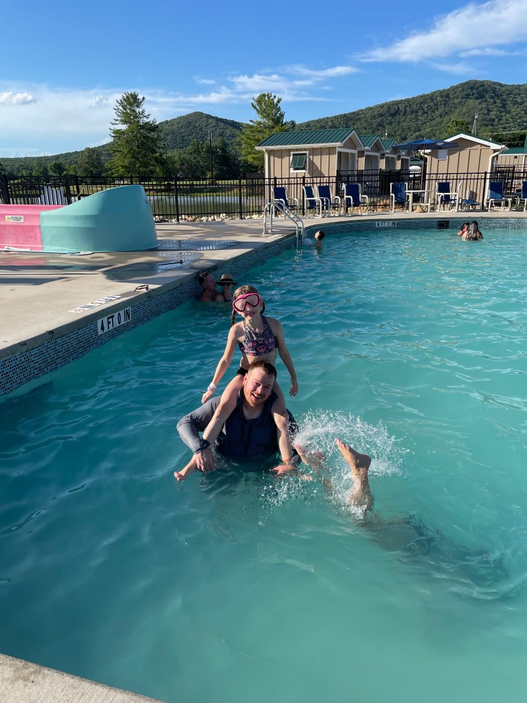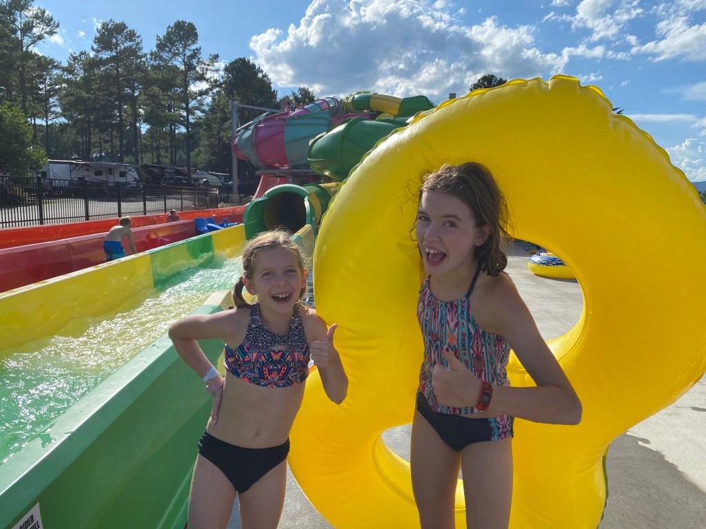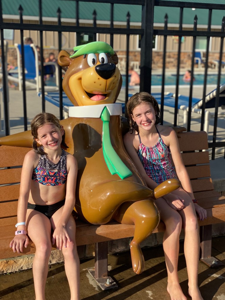 The highlight of the day was Jellystone Park. It has 3 big pools, water slides, gaga pits, outdoor movie theater, jumping pillow things… so much fun! We all loved it. Mat and I thought we’d be introducing the kids to Yogi Bear and his friend BooBoo Bear but they had a whole song about them from Camp Huckins! Another camp win for us. So while today had it’s ups and downs I’ll remember it as the day Emerson woke up not liking waterslides and went to bed loving waterslides! That’s what this is all about, new experiences and finding the fun.