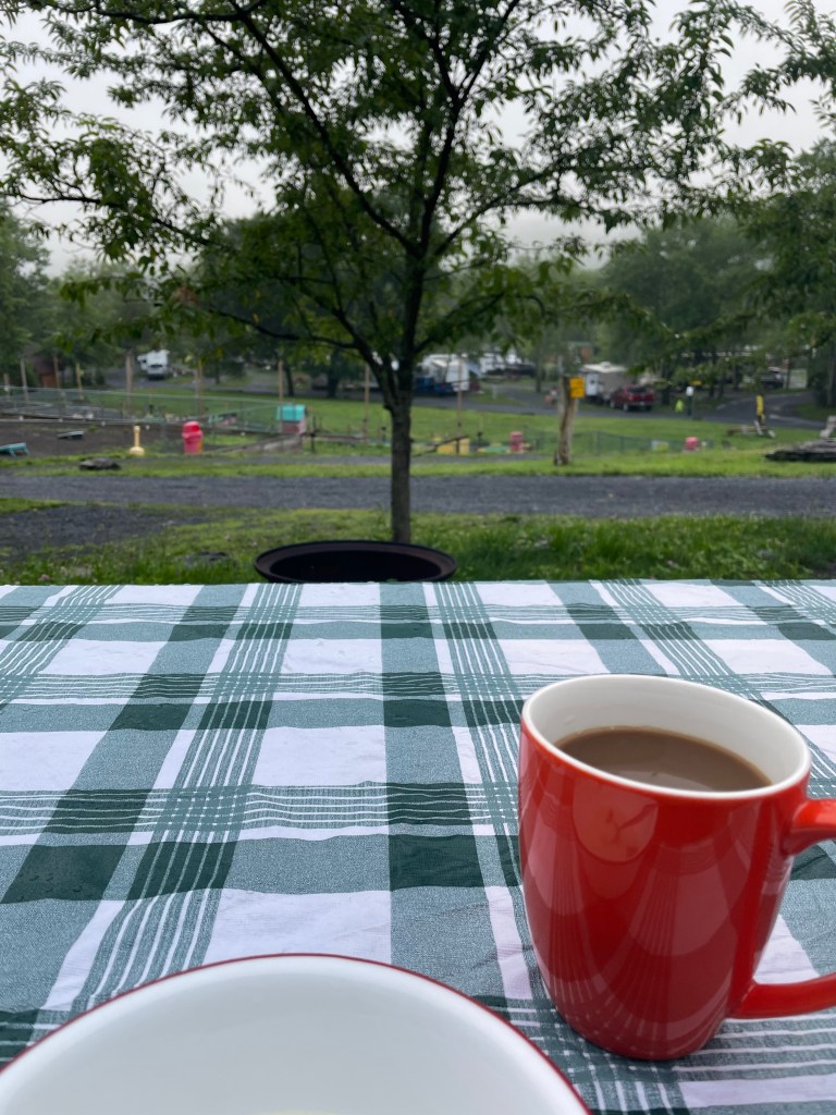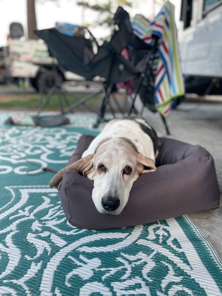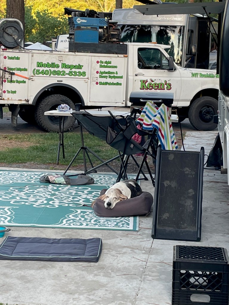 We had a great morning and then packed up to go and one of the slides didn’t want to come in. On day 2. They say the one thing you need to pack for your RV is a sense of humor but really? Day 2. This might be funny down the road (pun intended) but today not so much. We did close it in so we were able to hit the road as planned. Off to Luray, Virginia and Jellystone Park. On the way I was able to make some calls and have a mobile tech meet us later that evening at the new campground. He was very nice but not sure it was all that helpful, he thinks it’s the battery but didn’t want to fix anything on site because it’s under warranty and he didn’t want it voided. But the living room slide out is a ‘nice to have’ not a ‘have to have’ so we will vacation on! It’s definitely hard to squash the annoyed and disappointed feeling that my new and expensive toy isn’t working the way I want. And the problem solver in me wants to do whatever I can to fix it but since it’s a luxury item I don’t want to sacrifice precious vacationing and reroute us to a shop for who knows how long. The realistic side of me needs to acknowledge that this fix will most likely take more time than we have. We aren’t in any one location for more than 1 or 2 days until we’re out west in a couple weeks. And the competitive side of me isn’t going to let the negative feelings win…so the rest of the day will be fun and even if we don’t fix the one slide this trip we’re going to have fun darn it (insert Clark Griswald quotes here). Really the biggest inconvenience is for Murphy…we have a very long dog and the narrow space means he can’t turn around anymore, he has to back under the table and do a 3 point turn to change directions or back himself up. If you thought Murph moves slow going forward you should see him back up. Poor guy.