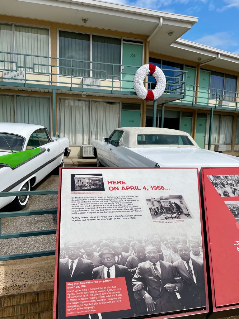 Our last morning in Nashville included provisioning (our 1st grocery run) and packing up to leave town. Next stop: Graceland RV Park in Memphis, TN. We arrived mid-afternoon and learned Memphis is home to the the National Civil Rights Museum housed in the former Lorraine Motel where Martin Luther King Jr. was assassinated, so we hopped in Peggy to go check it out. Tickets to the museum were sold out for the day but the outdoor exhibits were still wonderful and worth the trip. They had 6 or 7 kiosks with videos ranging from the causes MLK fought for, to the sanitation strike that brought him to Memphis, and of course, the events that took place that fateful day, the aftermath and journey to turn the motel into a museum. It was very moving and I would definitely make the effort to get the tickets we couldn’t if you are ever in town.