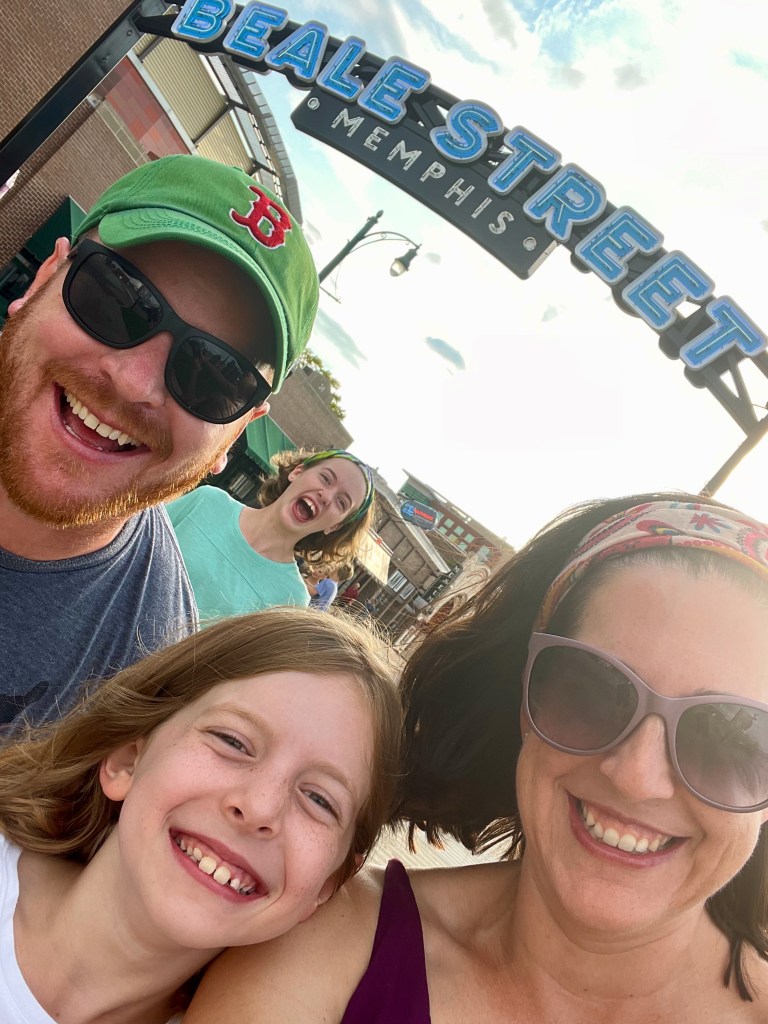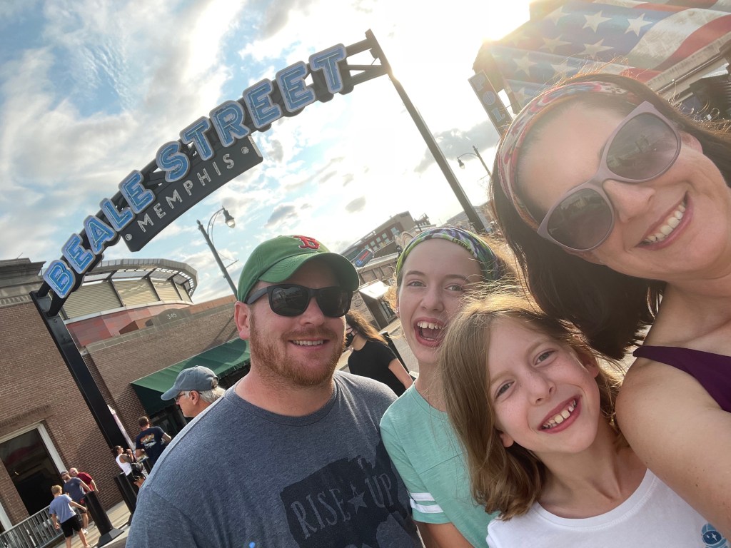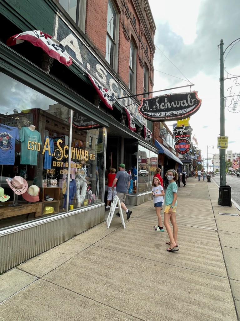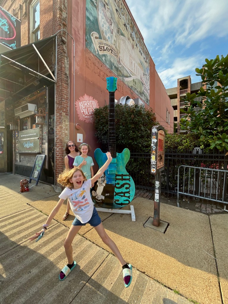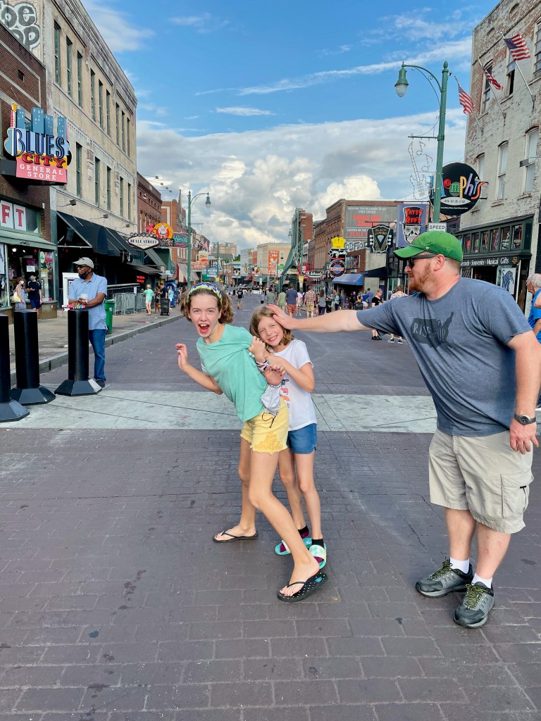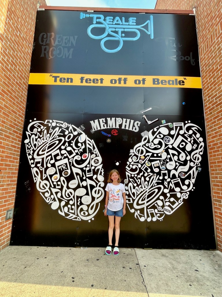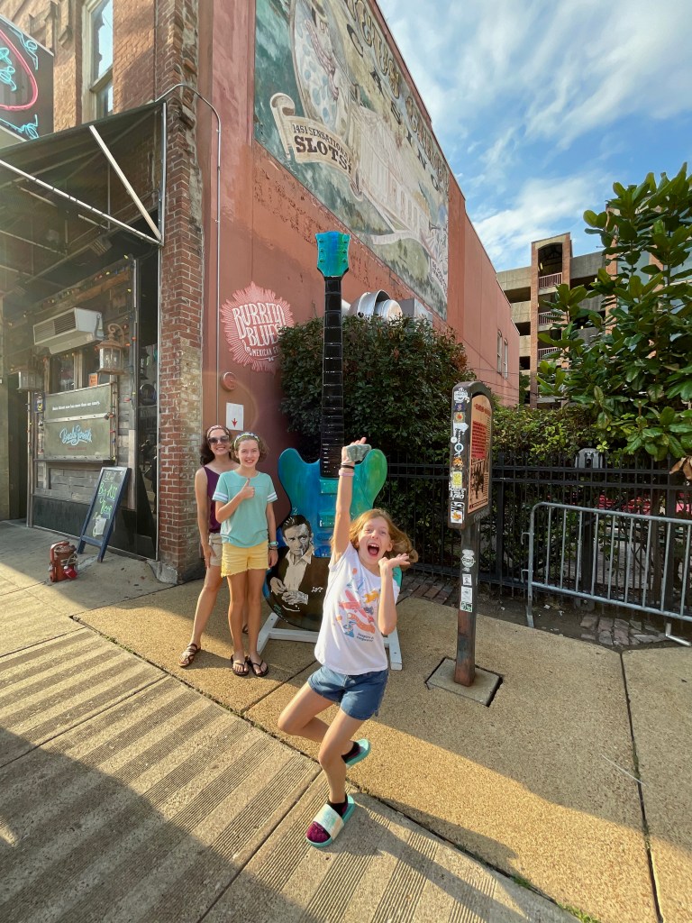 Next stop Beale Street. As we drove through Memphis I kept thinking of the Marc Cohn song so I put it on for the kids. I kept finding pieces of the song as we explored but, again, like the large apple, I was the most entertained by these little gems. We tried to stop for milkshakes at the old fashioned soda fountain in A. Schwab General Store (open since 1876) but caught it at closing so settled for massive sundaes at Hard Rock Cafe (same thing right?) There are plenty of restaurant choices on Beale Street but when the rain started we ducked into the first place that seemed child friendly. To be honest, much of the Memphis we saw this afternoon was pretty run down and sad. You can feel the history that lives here but it definitely felt like just that… history. So much more to see in town, including record studio tours, more museums, and a massive Bass Pro Shop that many have raved about, including the nice mom we met at the pool, but the crazy heat drove us back to the pool for evening swimming, followed by a lively poker game with our girls who have yet to learn the art of the poker face.