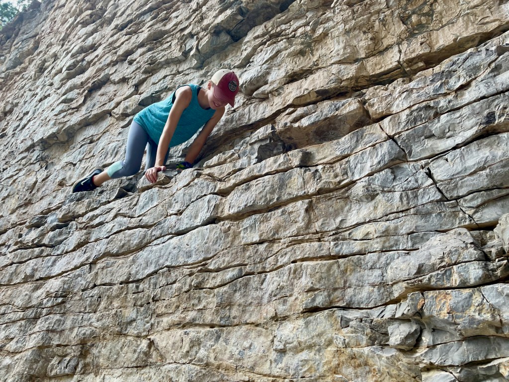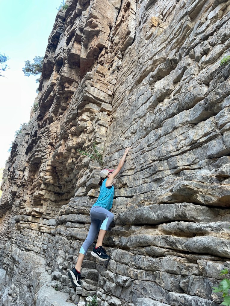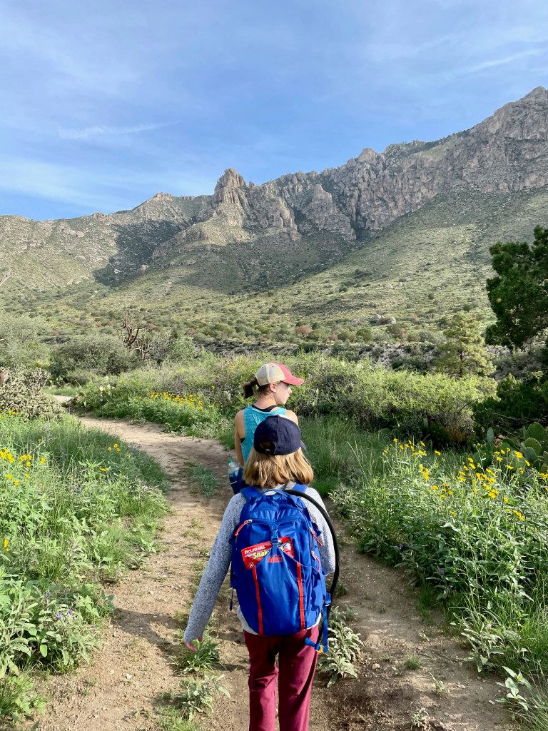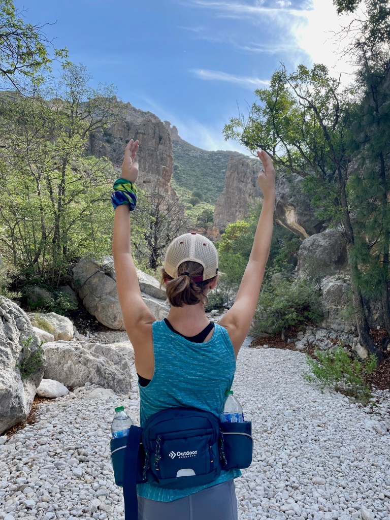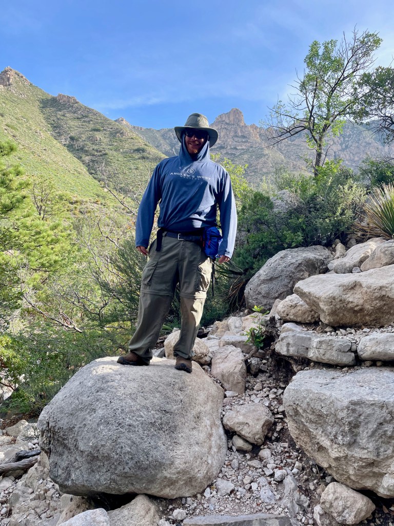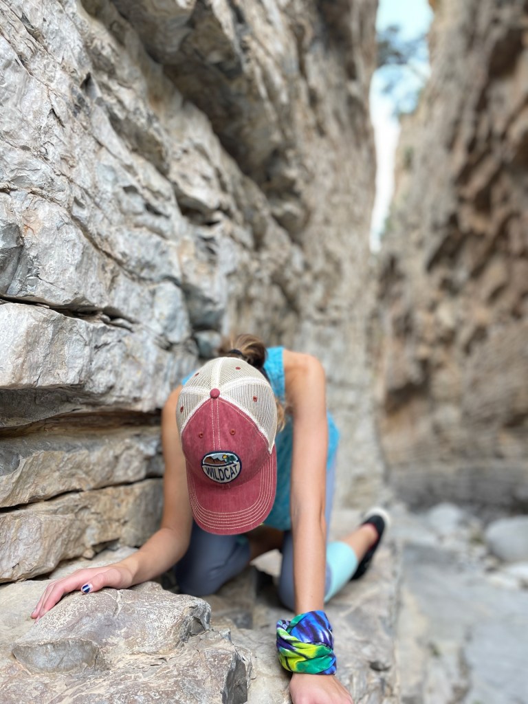 The trick to finding the fun: get up early before the heat (mornings are in the 70s here – perfect), pick a hike that you can talk your kids into (Guadalupe Peak’s 8+ mile hike to the highest peak in Texas will have to wait), know that there will be something along the way to capture their interest (thanks National Parks FB Group for tips and pictures of this hike). So that’s what we did – we hiked 2+ miles from the visitor center to Devil’s Hall. Loved it. And hiked the 2+ miles back out.