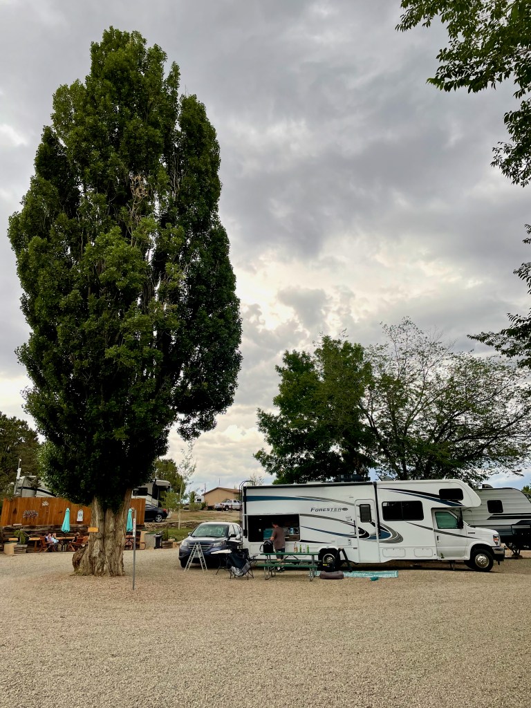 Today was fairly uneventful. Emerson even had a PJ day. We had a lazy morning and then covered 250 miles leaving NM for Mancos, Colorado. New Mexico’s landscapes were varied and vast and all beautiful. Besides White Sands, we drove through at least 4 national forests, up and down mountains, across reservations, and past our first rocky outcrops giving us a glimpse of what’s to come. It’s funny how you notice new landscapes as they change, you marvel, make the kids look out the window to check out the new scenery, and then it becomes part of the background again.