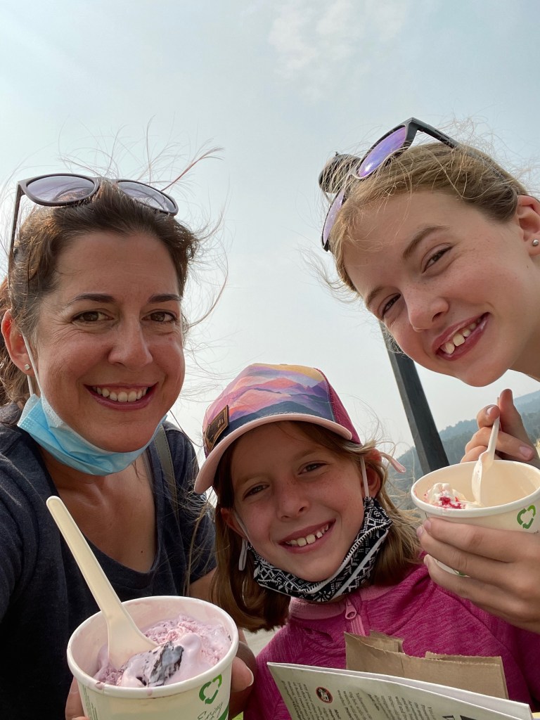 We also enjoyed Mammoth Hot Springs, which is closest to the North Entrance of the park. We loved all the exhibits and history in the visitor center. We got ice cream and Swedish Fish for lunch! After a few hours of driving and exploring we were satisfied and headed home. So while I say it’s worth it to deal with the crowds to see this incredible park, we are also in a spoiled position to see it in small doses and leave before we are too annoyed. If I had to wait 30 minutes at every spot worth seeing because I only had a day to see the whole park, I’d go bananas. We had fun talking about the animals we’ve seen on previous trips to the park, what the kids do remember from years past. We realized only Maddy has seen Old Faithful, and that was when she was a baby so that is something we can do again on a future trip.