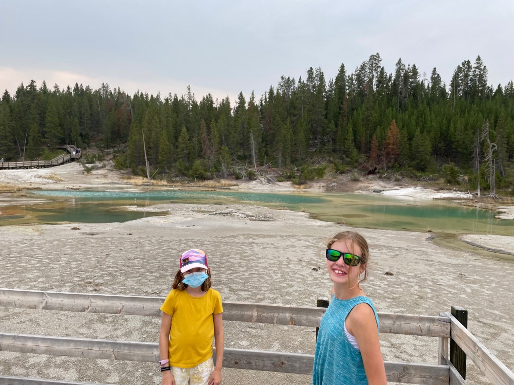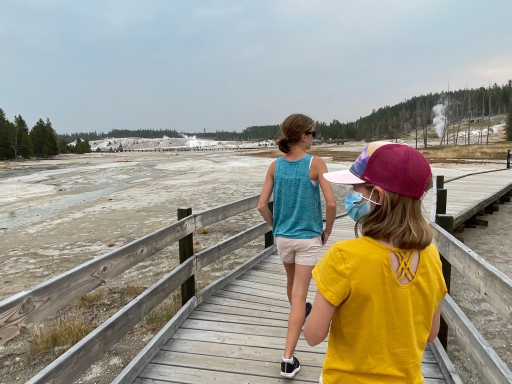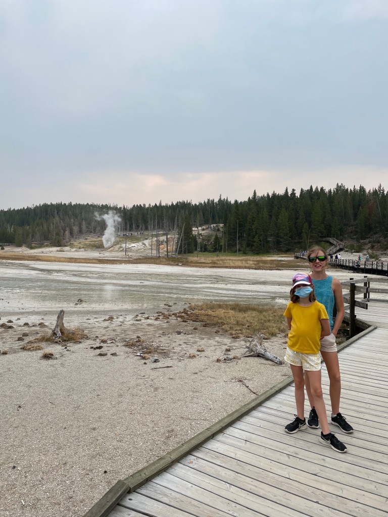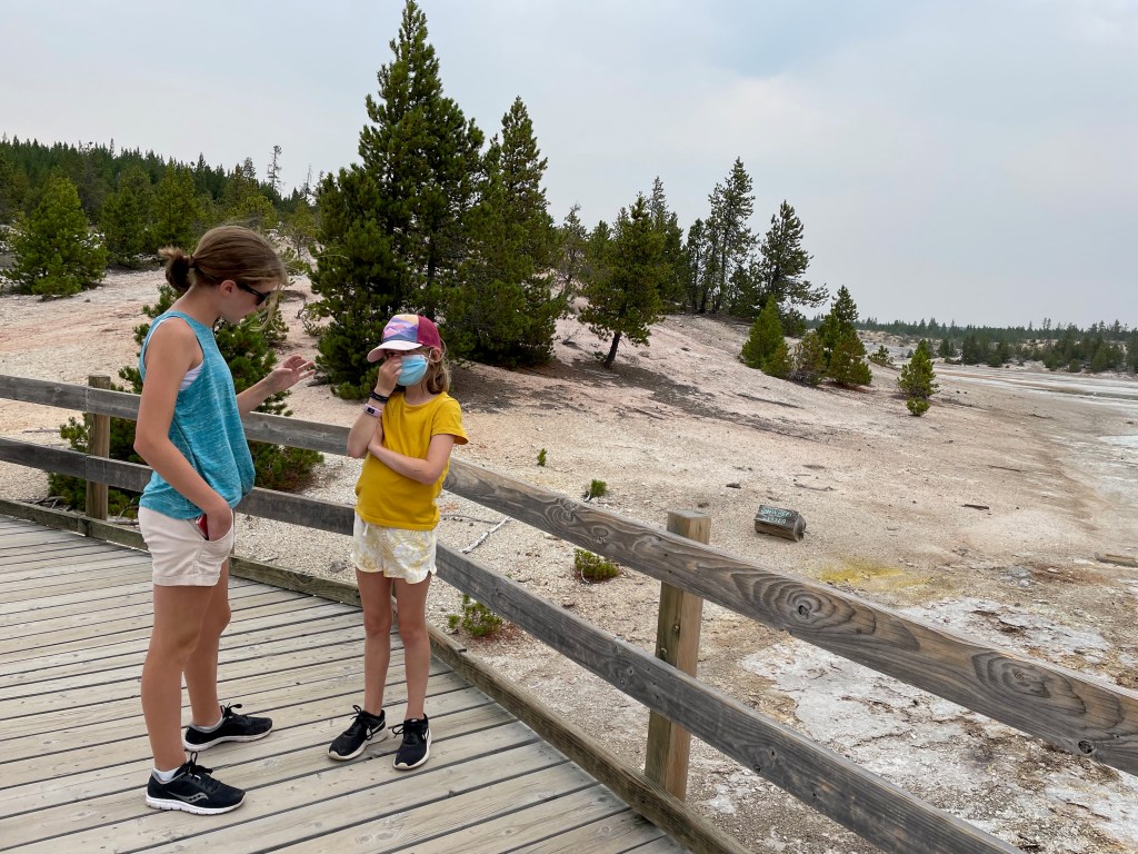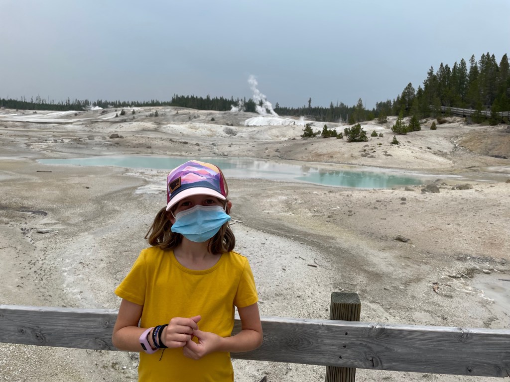 We did pick a couple stops to explore but quickly ran into the crowds that make this park less enjoyable than the others. The park itself is exceptional and there is truly nothing like it on earth! The crowds, the traffic congestion, the trouble parking, the lines to get into places make the experience less cool. The park is still super cool. So we drove easily from the North Entrance to Norris Geyser Basin and then hit traffic, patiently waited 20 minutes to get into the parking lot, another 10 min to get a spot. Annoying but worth it. The boardwalks through the “hottest, oldest and most dynamic of Yellowstone’s thermal areas” was very neat to see and hear (the Crackling Lake) and gross to smell. We learned the Steamboat Geyser there is the tallest geyser in the world but not predictable – it used to go off weekly and now it’s more like monthly.