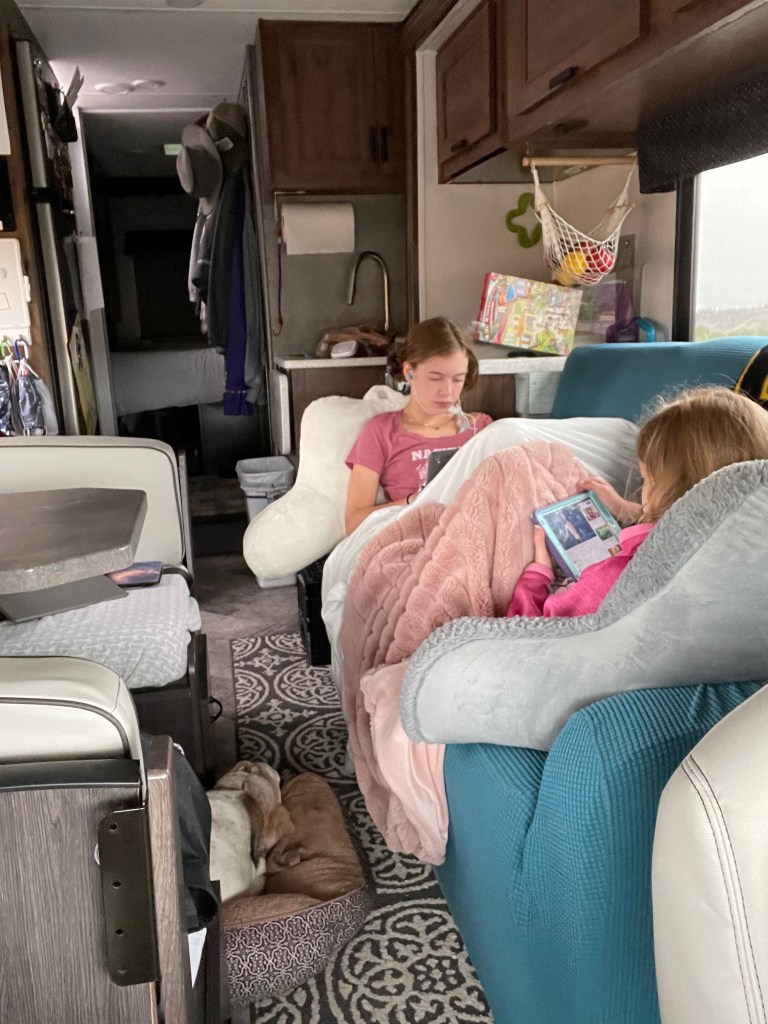 - No ramps to climb up and down every time he wants to go out. We were all getting what feels like hours of our day back. He’s pretty slow getting in and out of the RV.