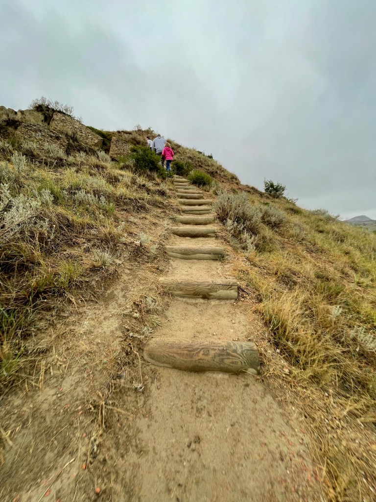 This park has 3 units and we visited all of the South Unit. I would have also liked to see the cannonball concretions in the North Unit of the park but that entrance is 70 miles away and a 90 minute drive in one direction (just to the gate) and my family would not be thrilled if I insisted on this 4 hour excursion in the pouring rain to see stones naturally shaped into balls. So we took our time in the South Unit and soaked in all the beauty there (see what I did there?… ‘soaked in’🌧 ☔️ 😂 ) The 3rd unit of the park is Elkhorn Ranch Unit and home to the foundation stones of Teddy Roosevelt’s 2nd ranch home and even harder to access than the North Unit.