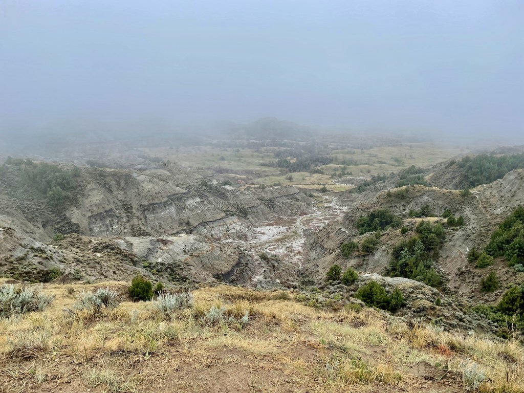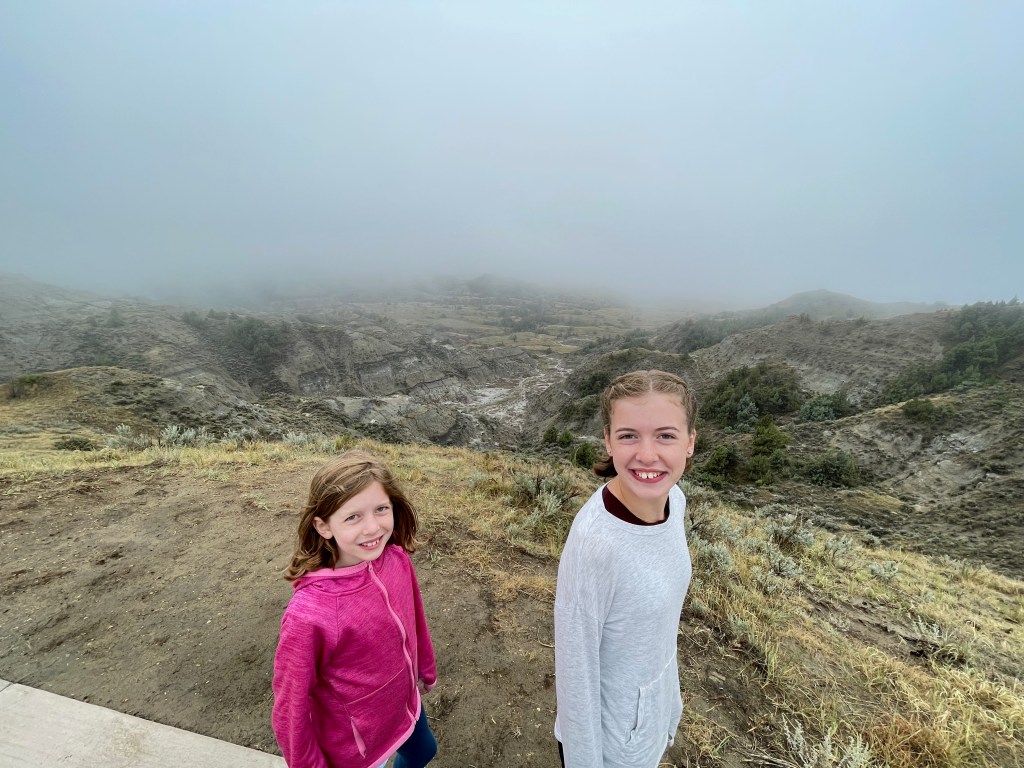 I LOVED Theodore Roosevelt National Park. It was breathtakingly beautiful even in the pre-storm, morning fog. We made it to the park early to beat some of the rain, got in lots of the “hikes” (their term but these were all easy walks), did the entire scenic drive and all the pull offs that weren’t closed for construction, and finished with the visitor center museum and movie when the rain was really coming down. I think sometimes my reviews of parks are influenced by emotions and everyone was in an exceptional mood today which made the whole experience that much sweeter. The kids were singing and laughing all day and we found everything here enjoyable… direct correlation there maybe?