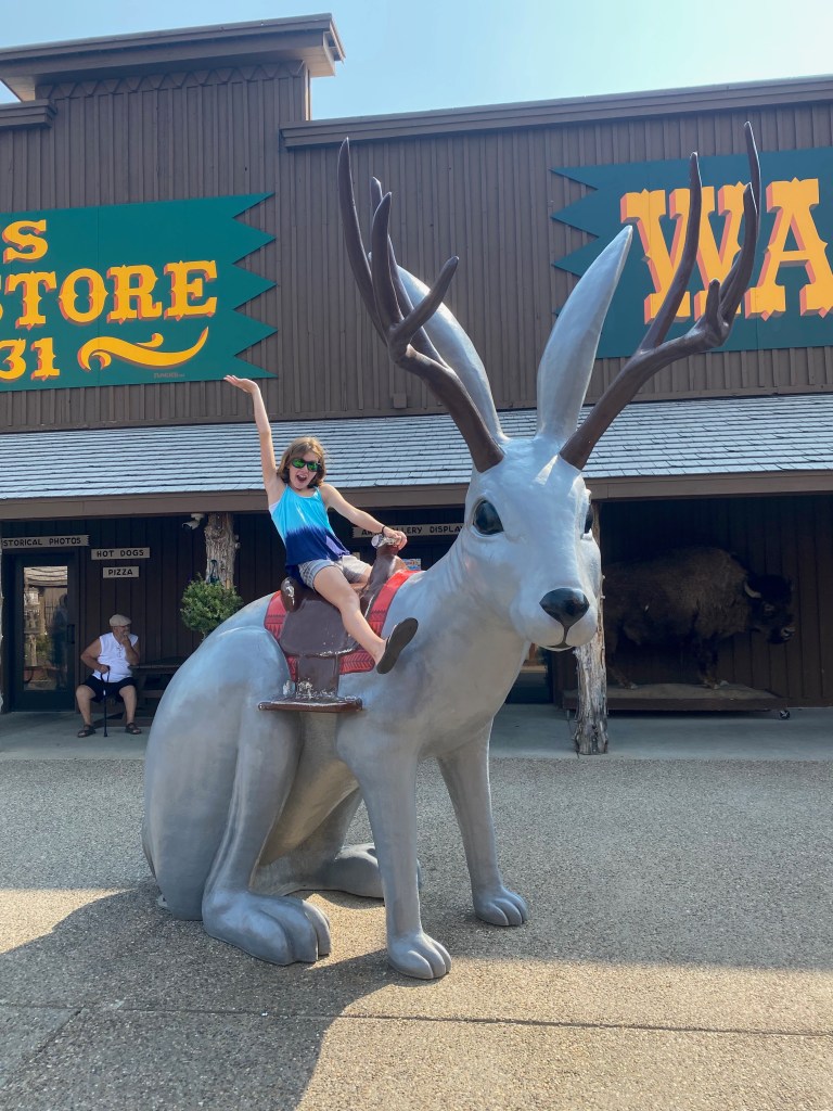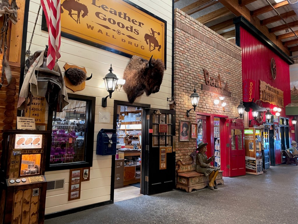 Left the very windy badlands today and packed in the tourist attractions knowing tomorrow is our last day and we’ll need to pack up. Wall Drug Store – massive, unexpected complex full of kitschy collectibles, jewelry store, book store, cowboy store, candy store, diner, soda shop, random dinosaurs and decor – even a chapel. It’s quite a sight. Kids had ice cream for breakfast and bought fudge for the road. What kind of parents have we turned into? If you are in the area you have to stop and check it out. Seriously, the dozens of billboards tell you you have to.