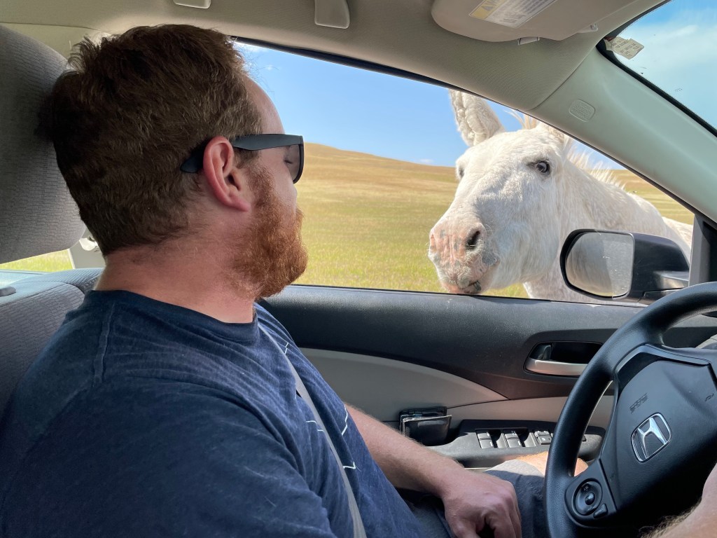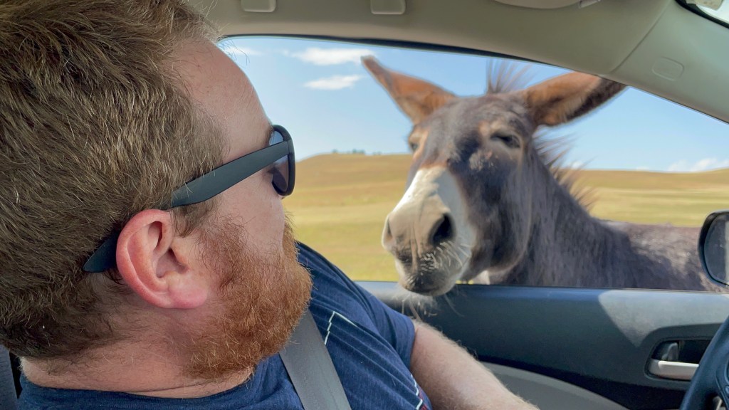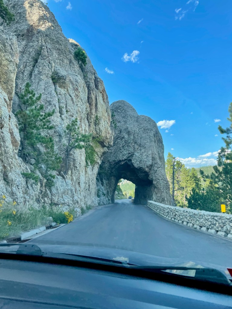 We didn’t stay long to enjoy the campground. We went to Custer State Park and drove the scenic loop. Awesome drive. We were very oddly excited to see a barnyard animal, but when you call a donkey a “begging burro” and find it wild in this beautiful park, it just seems more exciting. Stopping at Sylvan Lake was my favorite part. If I had just one more day on this entire trip this is where I’d spend it! Playing on the water right here with the gorgeous rocks jutting straight out of the water. We learned this is where they filmed part of National Treasure 2 (who’s wishing we’d watched it now? still me). Leaving the park we took Needles Highway and enjoyed the exciting twists, turns and tunnels.
