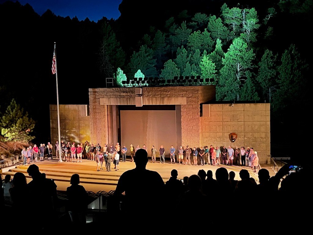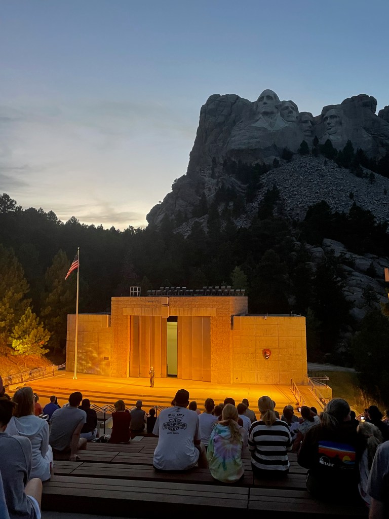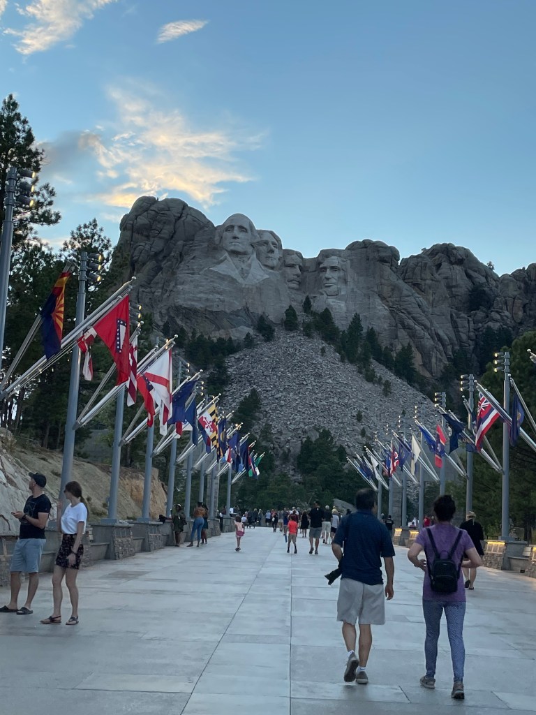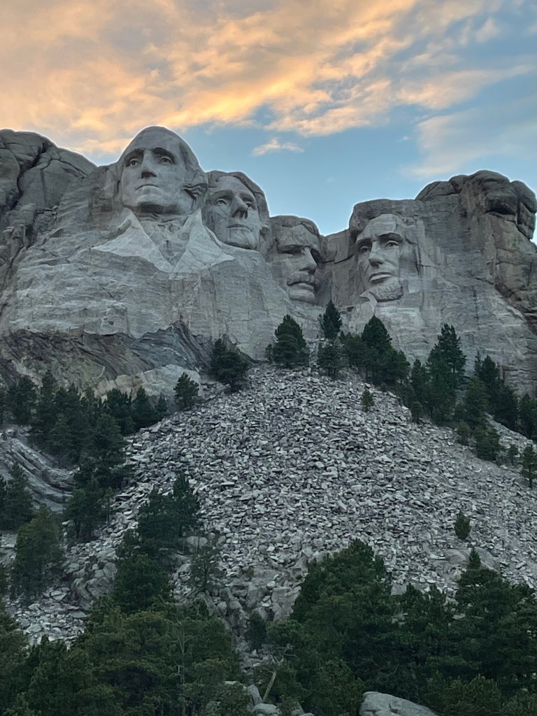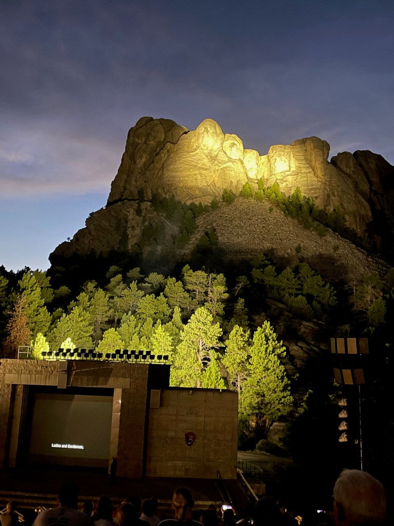 The patriotic movie they play in the amphitheater is 20 years old we noticed but still entertaining and the history hasn’t changed, LOL. The ranger talk was interesting and full of inspiring and surprisingly relevant quotes of four former presidents. And inviting all current and former members of the military onto the stage at the end for the ceremonious flag lowering was touching. The standing ovation that lasted until everyone was on the stage was a resounding applause of gratitude. I found myself more moved by the experience than I expected to be, but maybe it’s because this year alone we went to Mount Vernon (Washington’s home), Monticello (Jefferson’s home) and just came from TRNP so I feel like we have really invested our time in getting to know these people on the rock wall above us. So sitting here tonight did feel special. To be reminded of these presidents’ contributions to founding (Washington), expanding (Jefferson), unifying (Lincoln) and developing and preserving (Roosevelt) our country was inspiring. Time to add a woman up there.