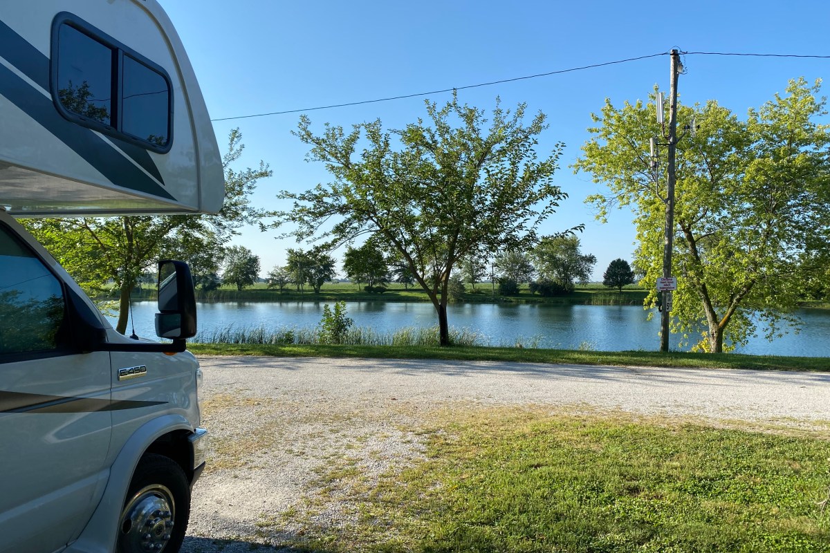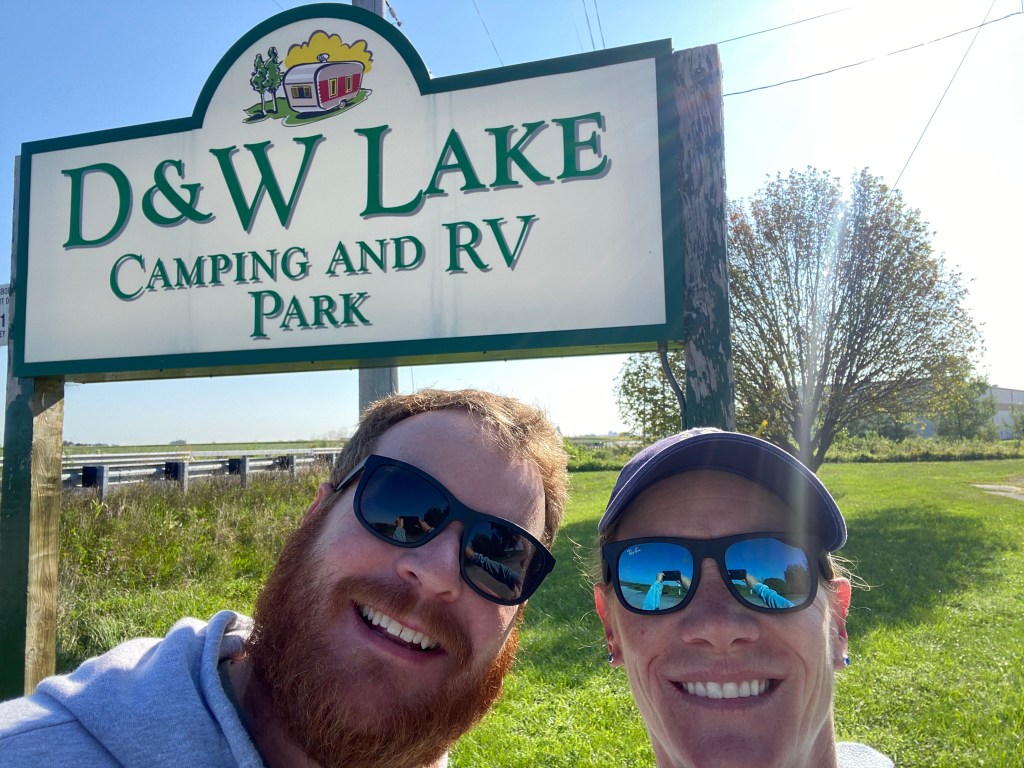The drive was uneventful, just the way I like it. We arrived in Champaign around 4 pm, and we were delightfully surprised by our campground, D & W Lake campground. It is on a small lake surrounded by soybean fields. It might be one of the prettiest views from a campground of the trip.
