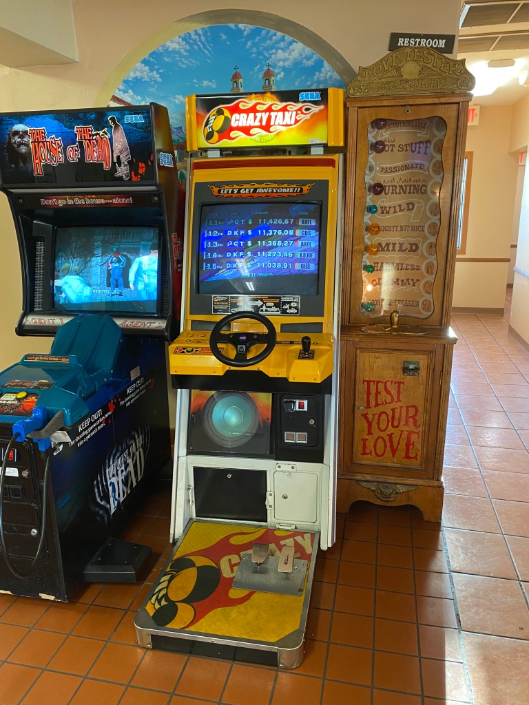 After getting Crystal squared away, Whitney and I drove Peggy into Champaign to see the downtown and to find our favorite burrito chain, La Bamba’s Burritos. Champaign is where the University of Illinois (student population of roughly 51,000) is located. The downtown was very quaint, and the burritos delicious. Well worth the effort, plus I had a blast from the past… an old video game I used to play in Sydney.