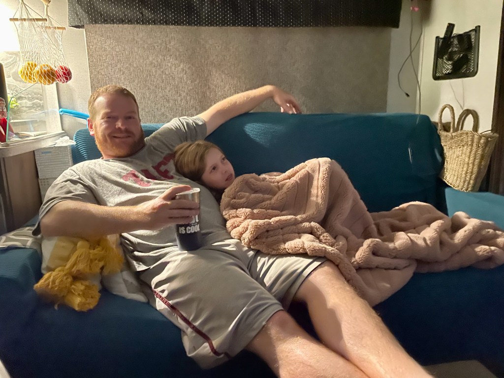 We enjoyed the Moab Brewery enough (and they can easily accommodate big parties) so we ate there again. We made plans to meet at the same spot in the park 12 hours after our first meeting to watch the sunset from the ranger recommended spot. So we finally saw our first beautiful sunset… just kidding, we missed it. Only a few minutes late! The kids enjoyed it from the car and Dave took a time-lapse for us since they made it in time. It’s turning into a family joke. We made our way to Panorama Point and did get to see the stars come out. A ranger popped up (they said they can’t announce star-gazing ranger programs because 400 people will show up so they just randomly show up at places instead) and told us the mythological stories of the constellations from the Hopi and Navajo people. She also pointed out planets with her laser but could have used Mat’s star gazing app to get them right, oops. It was fun laying on the hot stone ground to see the stars, satellites, planes, and meteors in the sky with friends by our side. I’m pretty sure the sky is darker at our camp (when the streetlight Mat hates is out), but we also don’t have a trail of tourists driving in and out. A memorable night.