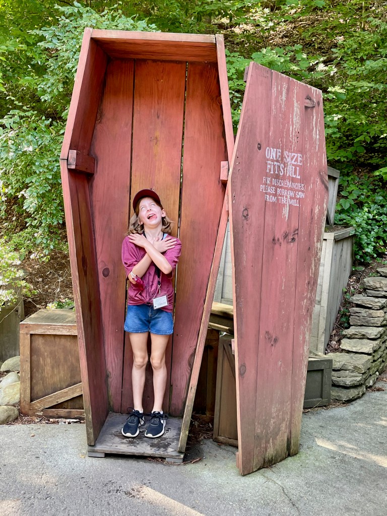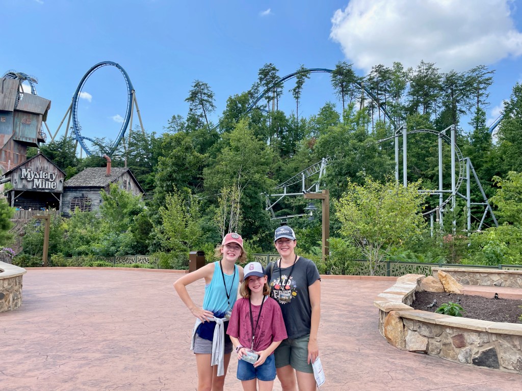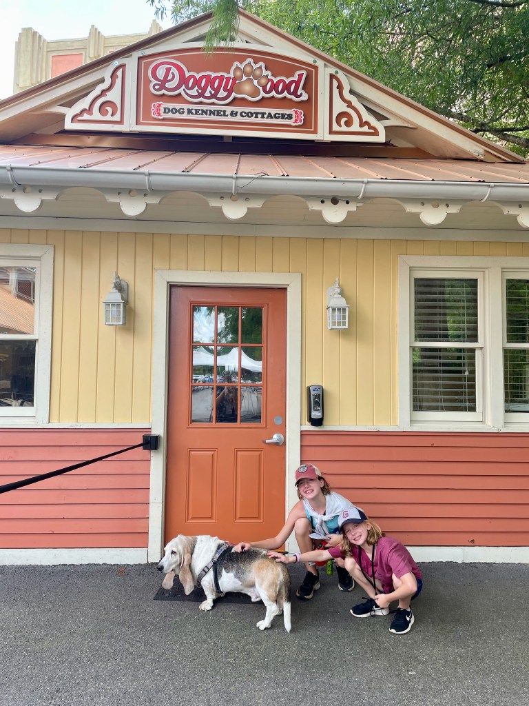 More importantly, Dollywood was a blast! Their on-site kennel was very sweet and clean, you drop off your dog and come back as often as you want during the day to walk your own pup. Murphy seemed to love Doggywood and didn’t mind going back after his walks. We were in the park for opening, with fast passes, and rode tons of BIG rollercoasters before lunch. At one point Emerson loudly screamed “I don’t want to do this” while we were paused at the top of a very large loop-de-loop, and Maddy sat out of the one that takes you straight up and drops you down, but otherwise they were happily trying the black diamonds (think ski slope ratings) to dad’s delight and all of the blue rated roller coasters! Our kids are old enough that we could spilt up for a bit so the kids did one of their favorites again while Mat and I tried the Wild Eagle – it was the smoothest roller coaster I’ve ever been on and super awesome from the front seat! Kids couldn’t be talked into it this trip.
