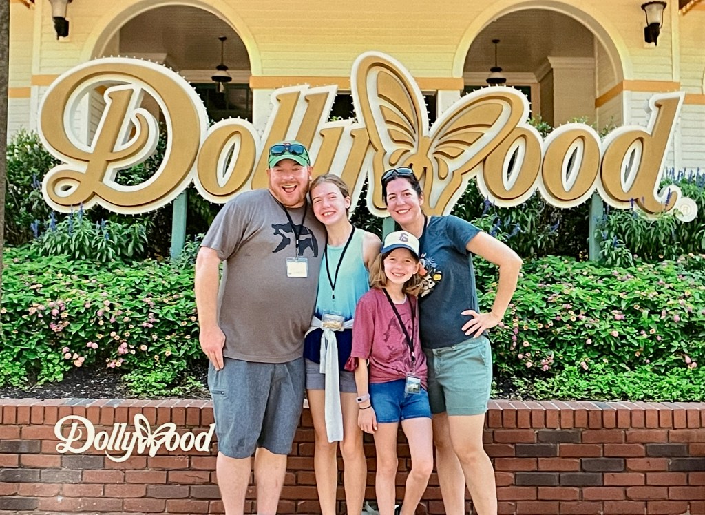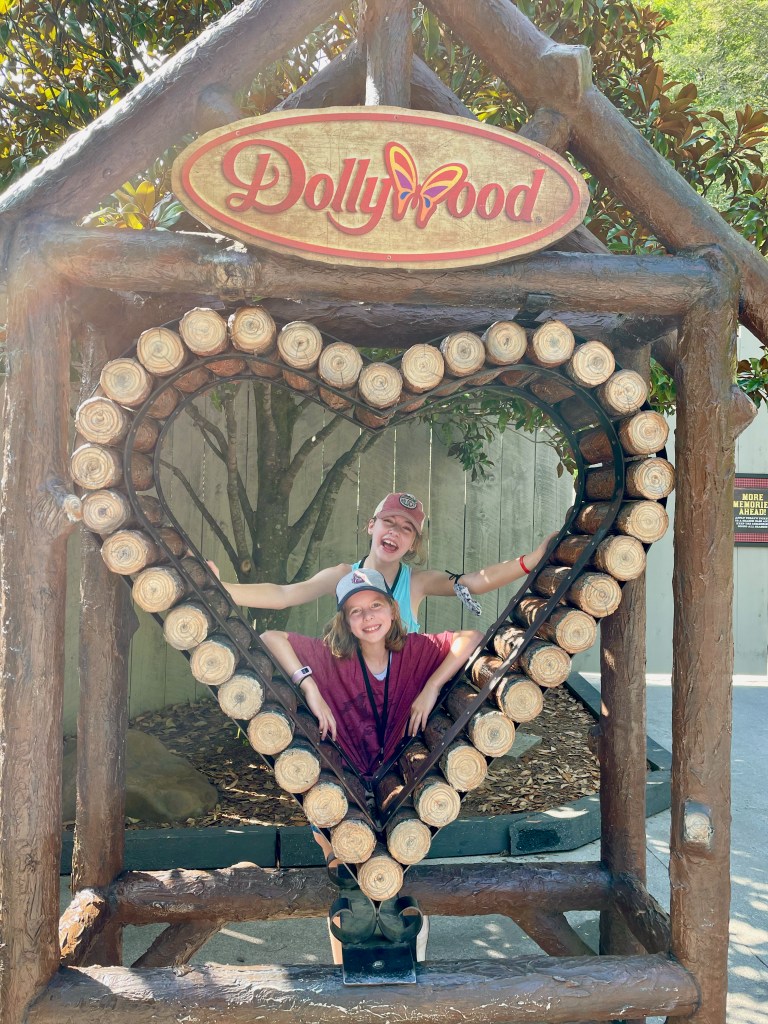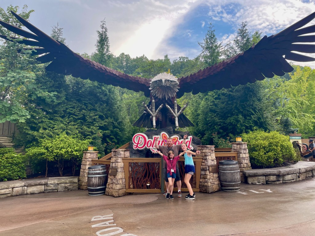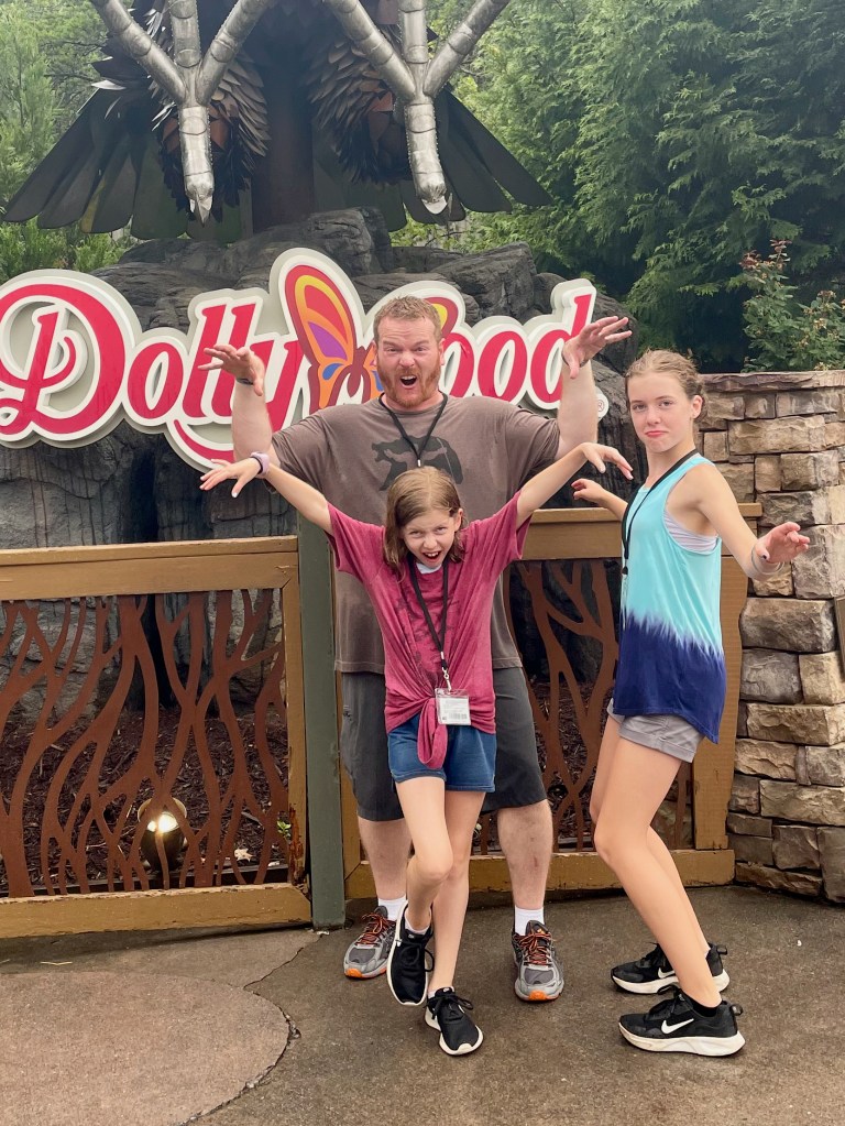 Dollywood theme was butterflies and Great Smoky Mtn (mining, logging, fire fighting, and old Americana feel… and a graveyard)Happy to be hereOur biggest Dolly fanNot very crowded!!Visiting Murphy at Doggywood, he’s ready to get out of the heat and go back to his air-conditioned digs.Dolly’s RV tour busDolly’s “coat of many colors” replicaDolly’s MuseumMaddy in front. Emmy right next to her on Dragonflier.First day we didn’t swim but we got wet! The thunder and lightning shut down rides for a couple hours in the afternoon so Mat was able to pick up CB and set her up at the campground.My peopleAfter the rainsEmmy and I rode that tall ride twice and now it’s touching the moon!Still not too old for her dad’s shoulders after 28k steps.My guys relaxing after a fun dayDay 5 verdict: a blast!