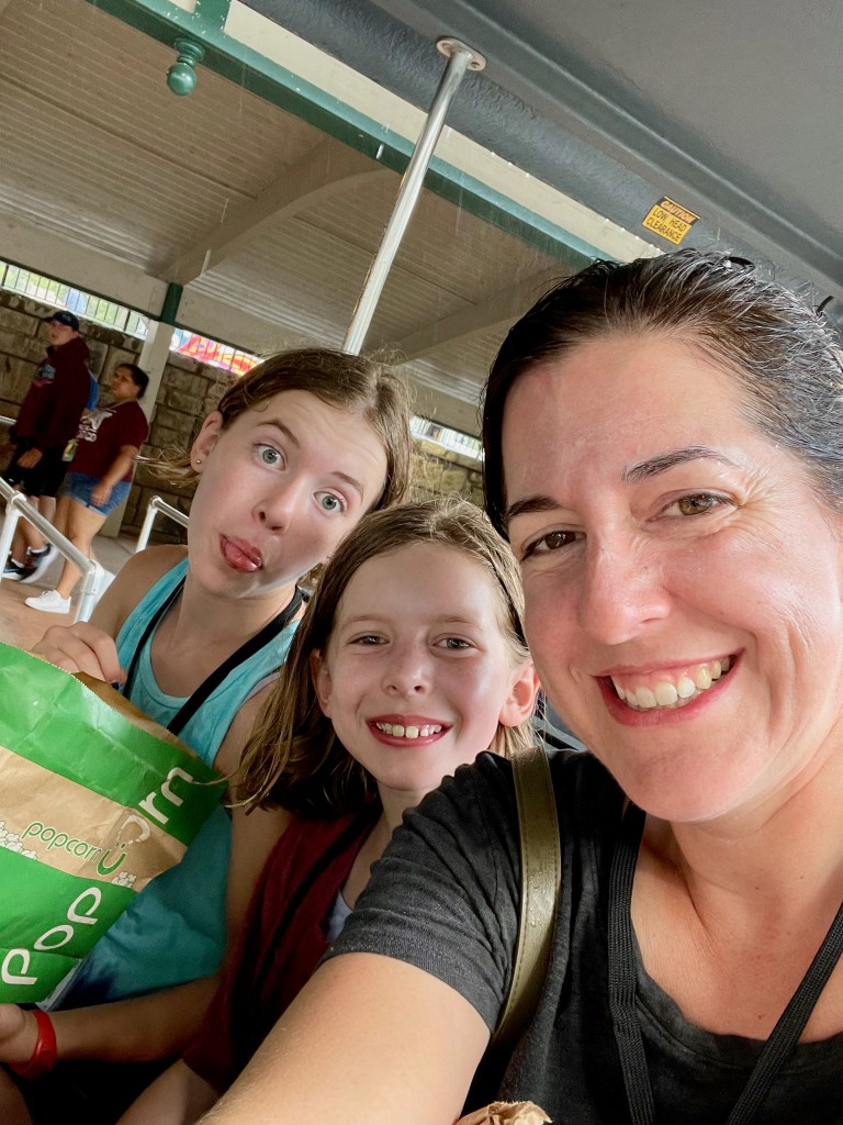 Getting in tons of rides before getting caught in the pouring afternoon rain! Emerson was giggling her head off as we ran through the park soaking wet.