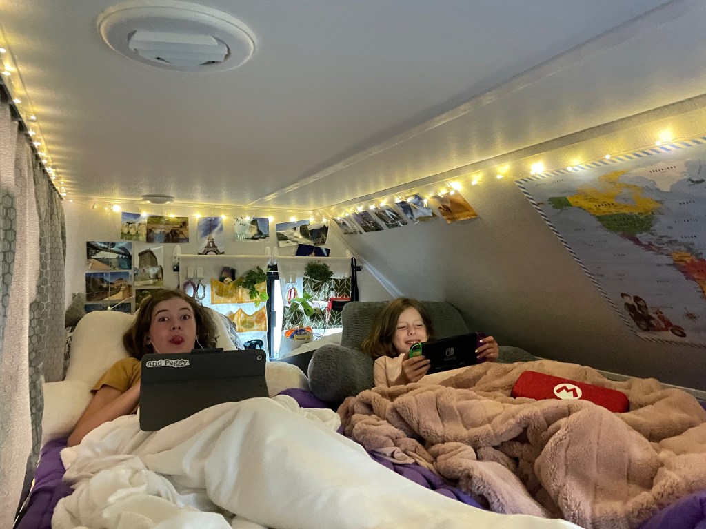 We left Luray, VA and made it to Pigeon Forge, TN. 385 miles breaking our self-imposed rule to stick to 300 miles or less a day but we want to get to Dollywood! The drive was uneventful, yay, except for passing numerous accidents in Knoxville. Kids are loving the down time the drive provides and find it more comfortable each day. Maddy was worried about getting carsick and sharing small spaces and she has recently admitted she’s not only enjoying the rides, she loves her shared loft space! Phew. No one wants to be stuck with a grumpy, moody 12 year old.