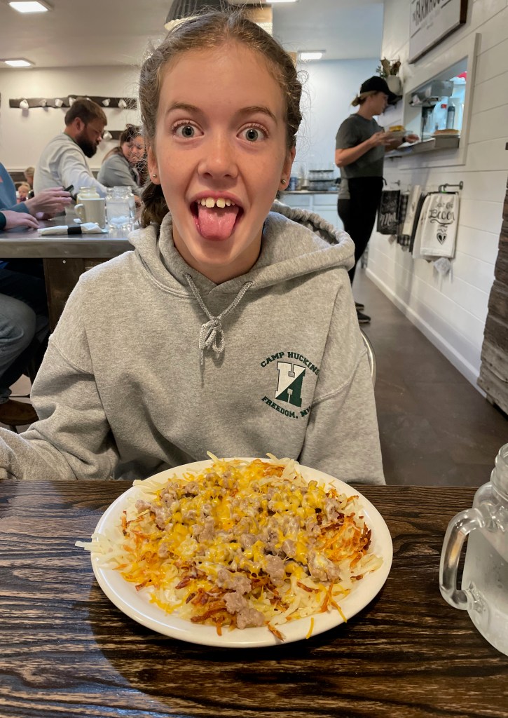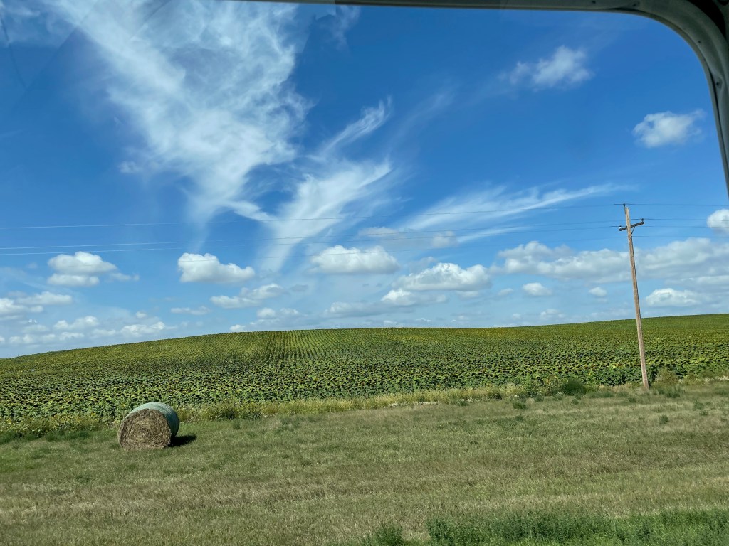 Excited for the Farmhouse breakfastSunflower fields!More sunflower fields. These are going to be amazing in a couple weeks!Last new state for us girls.Best co-pilot.I loved this one. They serve free pancakes everyday in a cute indoor/outdoor dining pavilion.Everyone’s happy. My heart is full.The view from our campsite.So close! Just missed sunset.Still beautiful. White River.