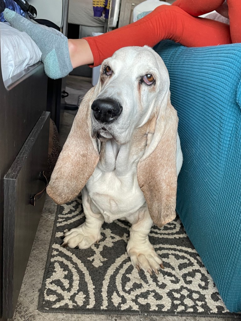 Lots of people around to keep him company when he’s not sleeping. All a basset wants really.