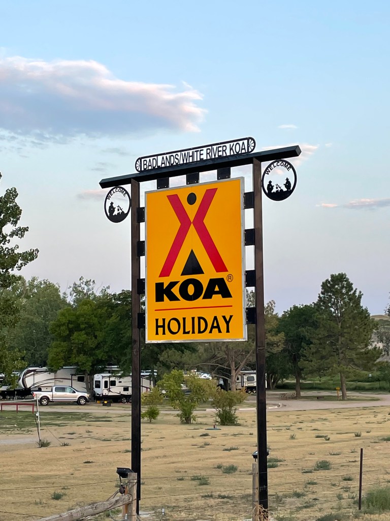 Our late start on the road, long drive, some wind, meant late lunch and not arriving at Badlands KOA until dinner time. We unhooked Peggy in Rapid City so I could pick up a couple things and nearly caught up to Crystal since the wind slowed them down. Everyone was in good spirits getting out of the RV and exploring this great little campground. We had a fun dinner, saw the sun setting so ran over to the bridge to get a better view and missed it. Again. Mat said the problem this time was we were greedy. We should have just watched the sunset from the campsite obstructed views and all.