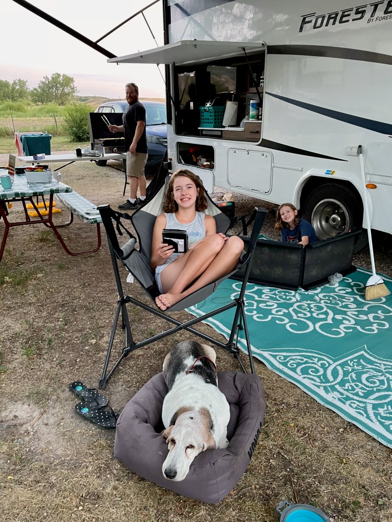 We experienced much different weather on our drive out of ND than the drive in – sunny and getting hotter. It’s like we drove from summer to winter and back into summer. How long have we been on the road? The scenery was gorgeous and I’m still not tired of this nomad life. Today was also our last long RV drive for me and the girls. Next 2 nights are in the Badlands, and then we drive only a couple hours to the Mount Rushmore area for our last 2 nights. The end is in sight and the kids are getting very excited. They are still enjoying the trip, but they are starting to think of what they need for school and which friends they can’t wait to see when they get home. I told them one of my favorite parts of traveling is the grand finale when you get to go home. It’s a fantastic feeling, and if you never leave home you never get that excitement and fresh appreciation for the ordinary day to day life.